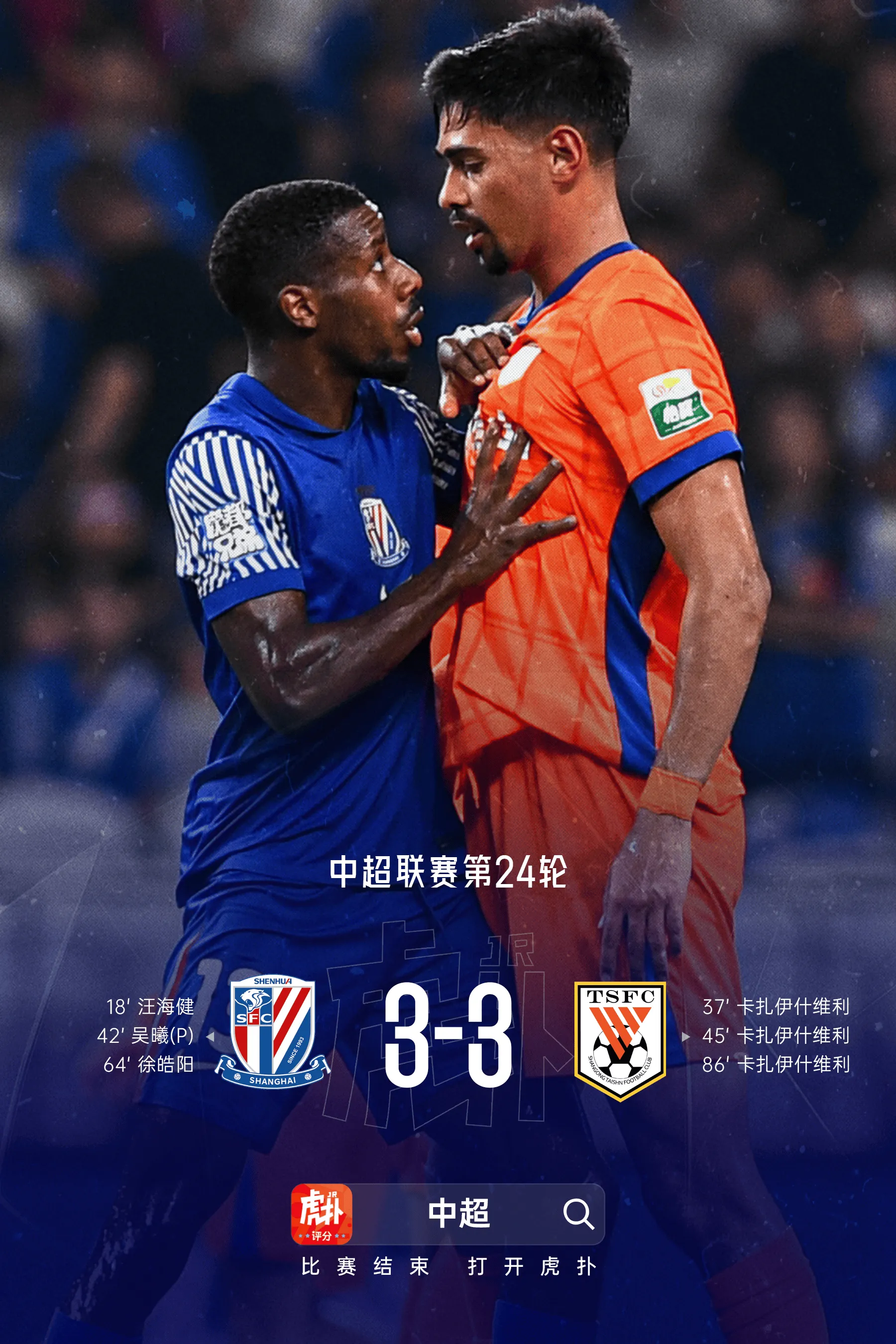 虎扑09月12日讯 中超第24轮中,积分榜前四球队的比赛已经全部结束,成都蓉城、上海海港均取得胜利,上海申花战平山东泰山两轮不胜,北京国安不敌河南遭遇两连败。